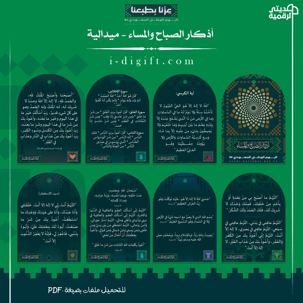 احصل على ملف رقمي يشمل الأذكار النبوية اليومية بتصميم جذاب وعصري يناسب الطباعة والاستخدام الشخصي أو التجاري. الملف يتضمن الغلاف مع تفاصيل دقيقة لكل ورقة.